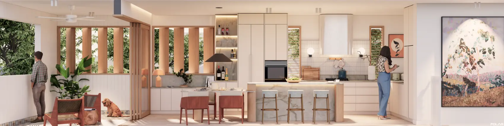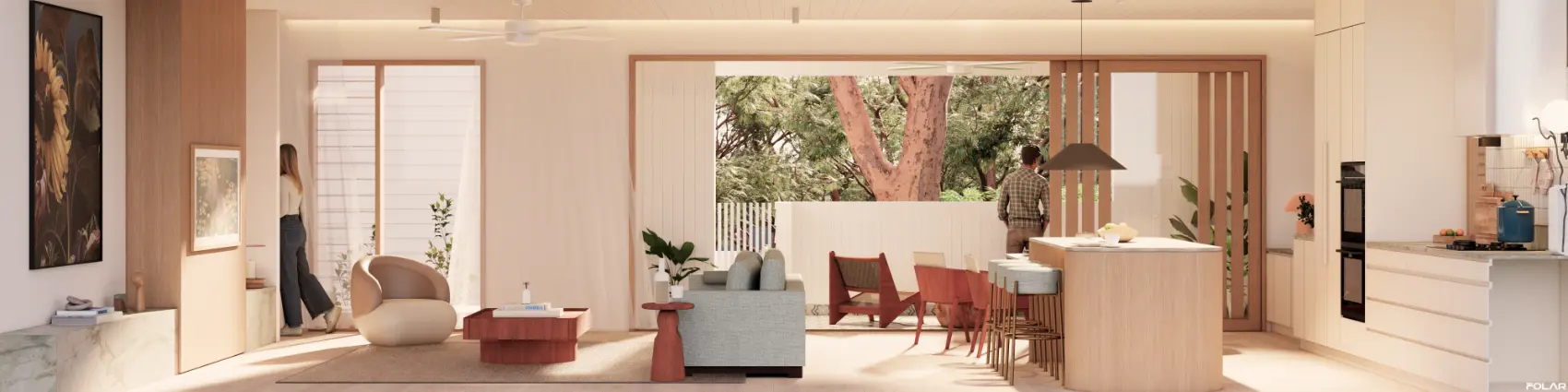 Key design ideas included allowing spaces for privacy as well as coming together as a family. The outdoor room acts as the heart between the two homes, providing a space for the family to enjoy a BBQ & relax by the pool.
