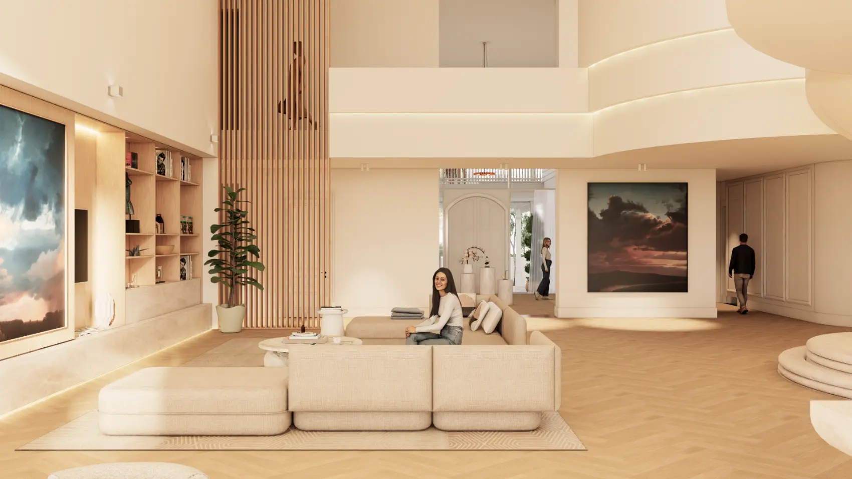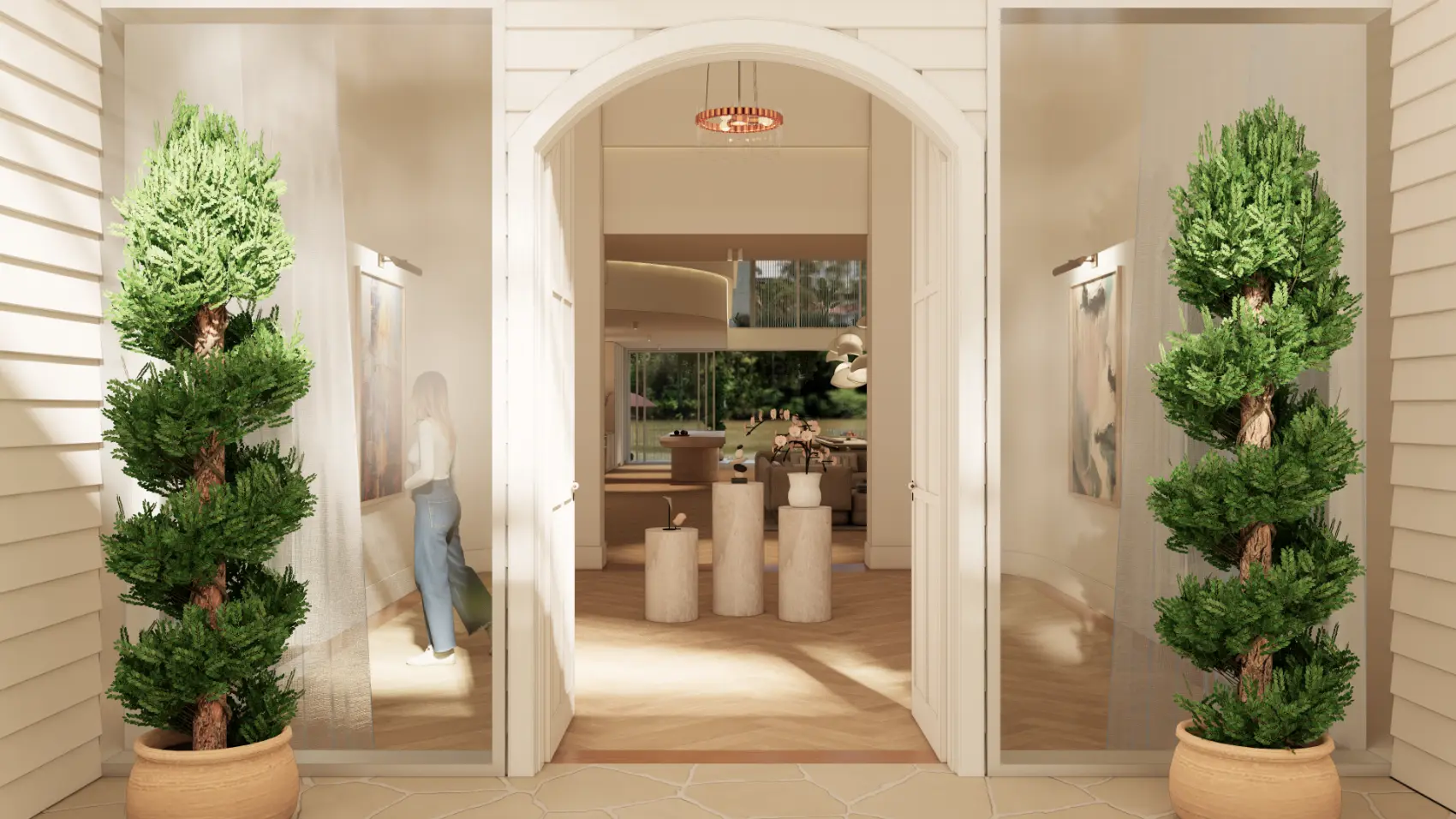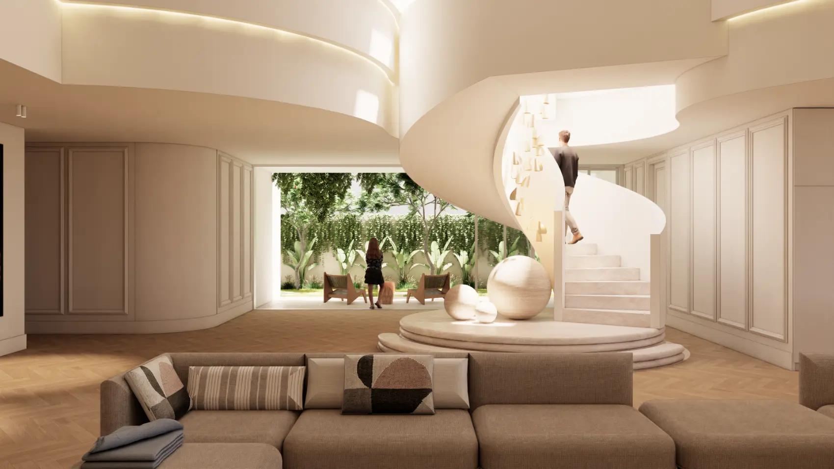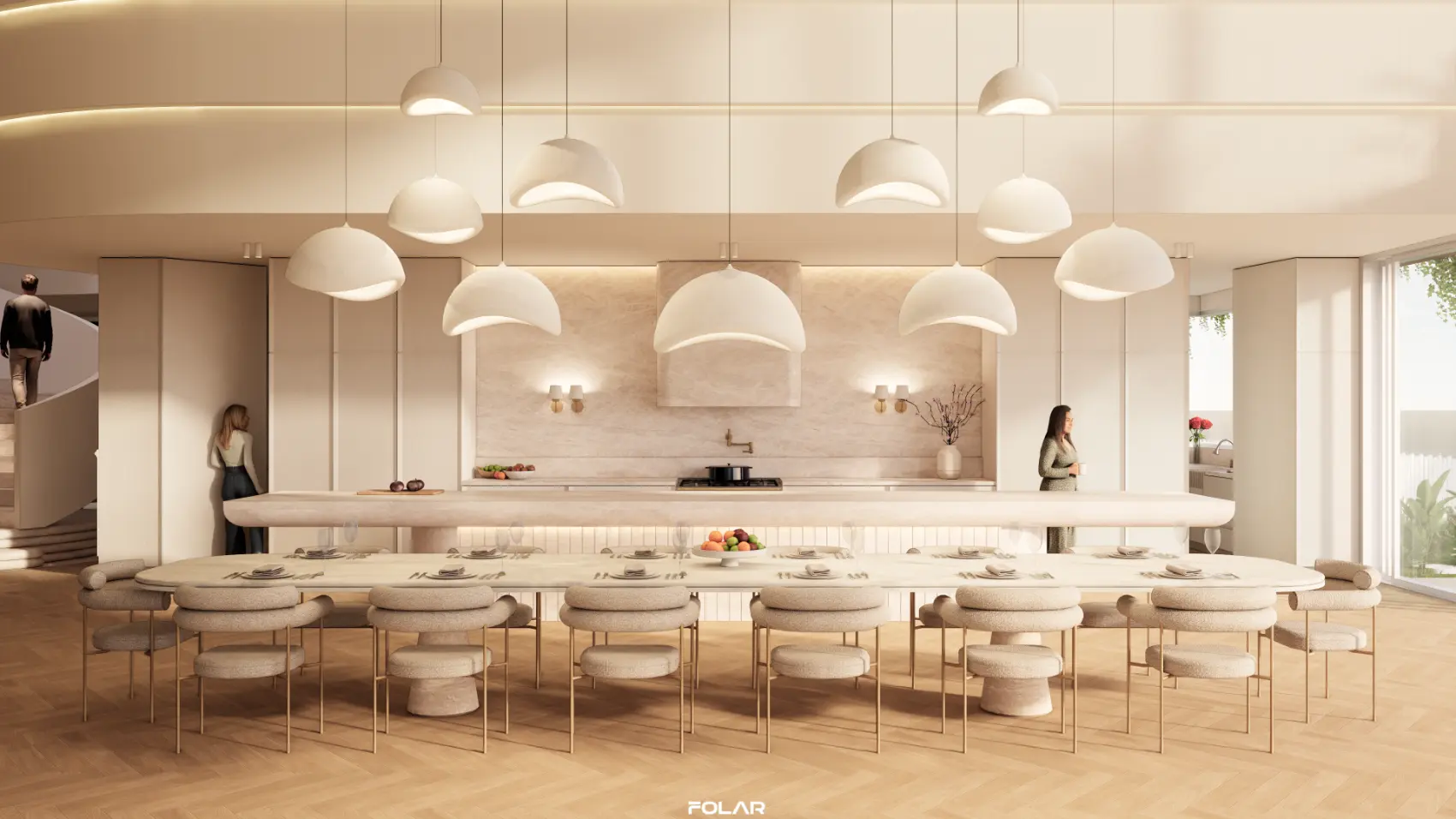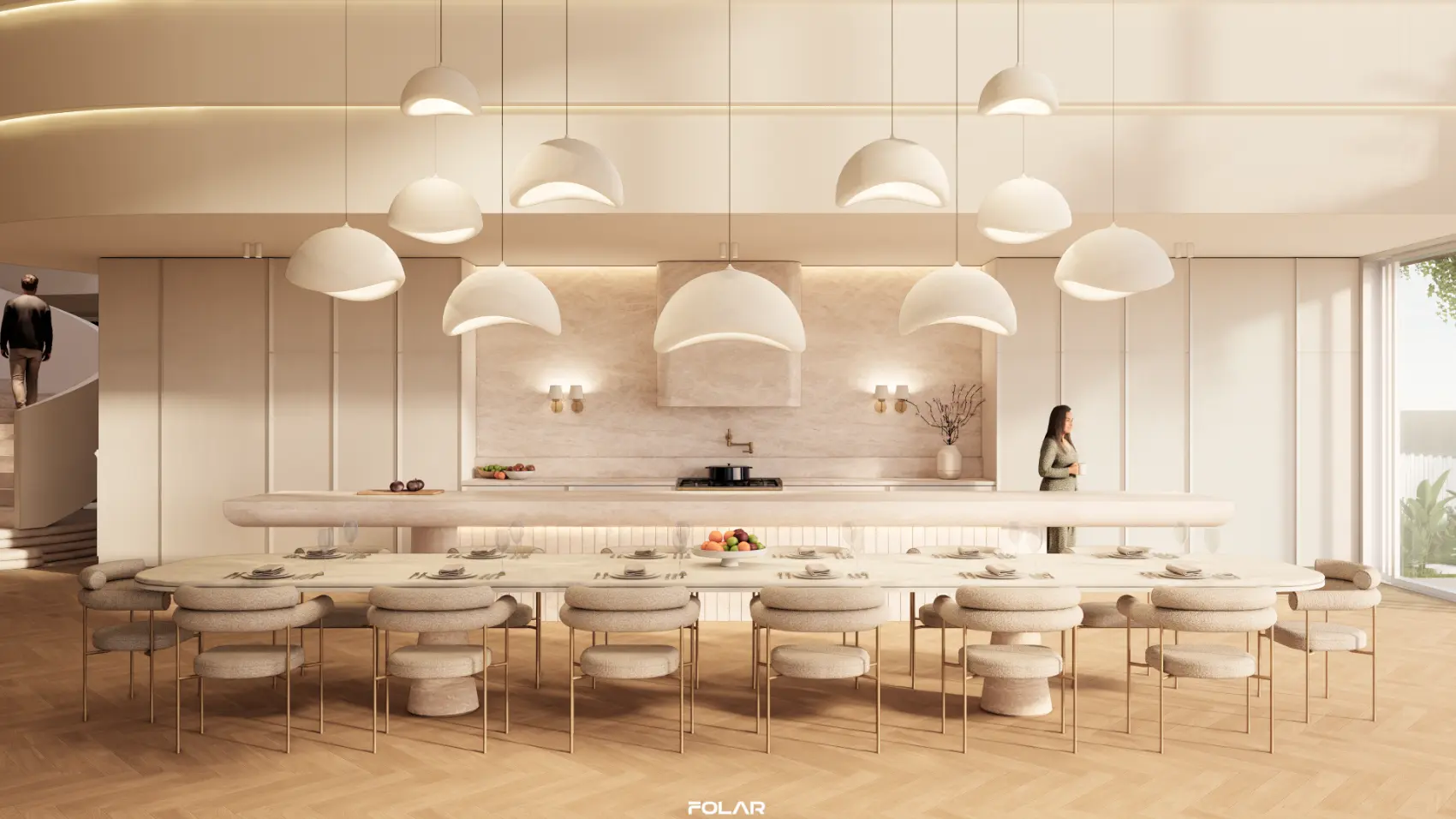 Internally, vertical timber battens are a contemporary reference to traditional Queenslander homes. The white & rich timber tones, complimented by travertine stone achieve a neutral material palette, making the landscape the focus of the design.