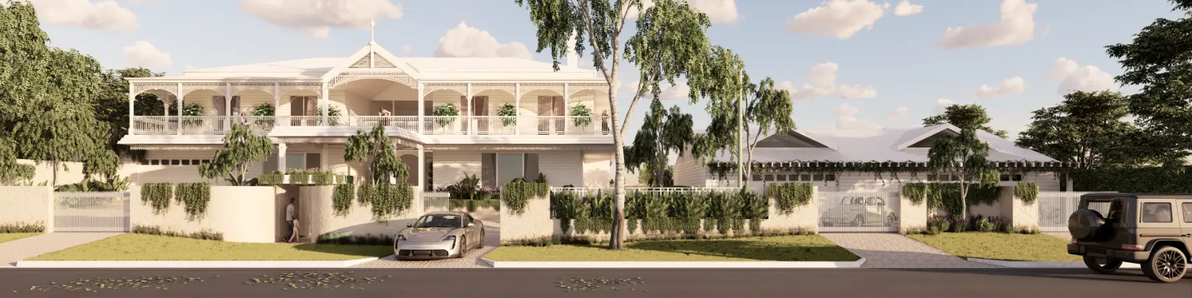 At its street frontage, a character Queenslander style home blends seamlessly into a contemporary interior. The layout of the home has been thoughtfully crafted to take in the river views from key vantage points in the home, upon entry, the river is the focus.