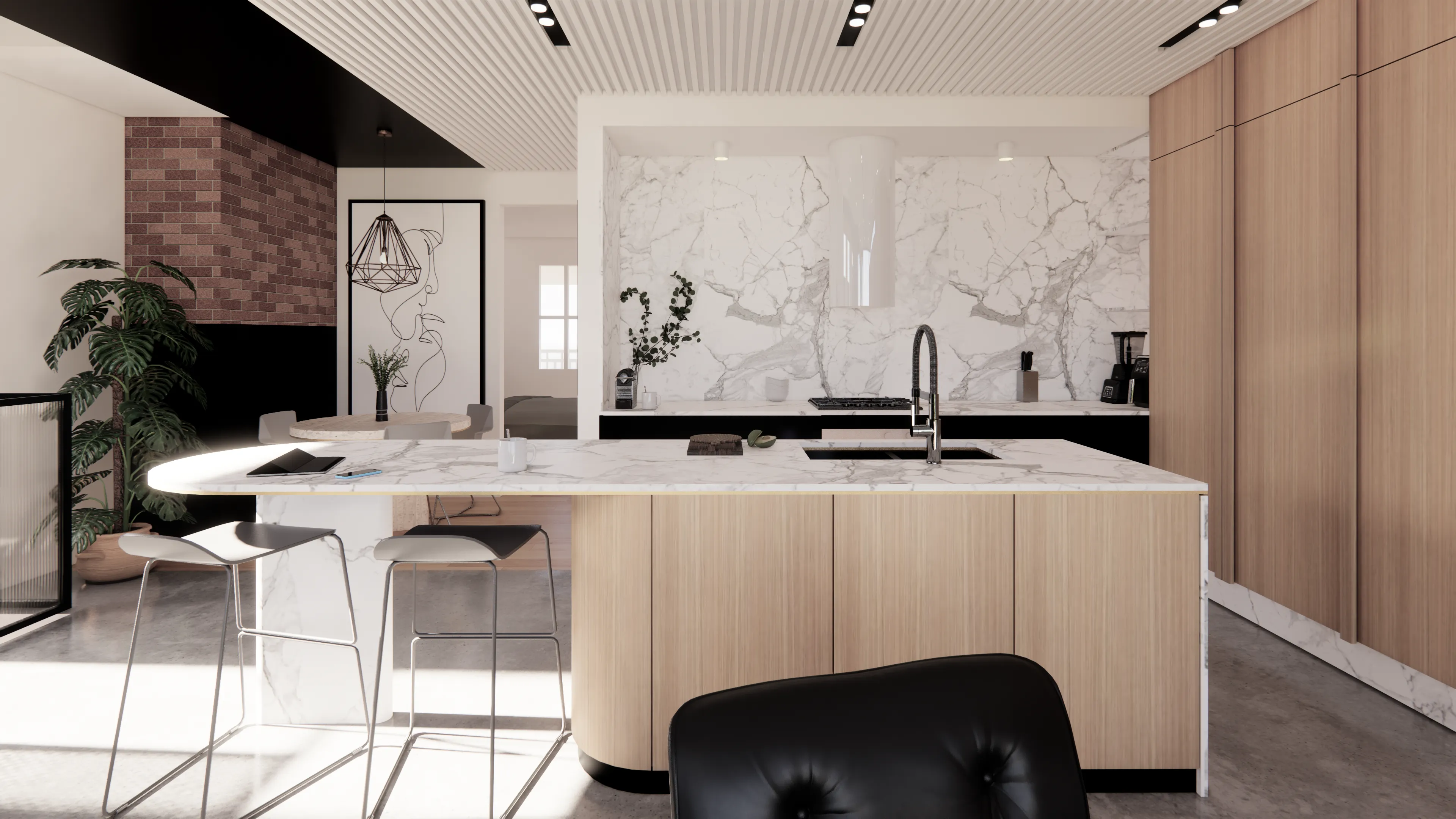 Its proximity to the CBD and Victoria Park informs an urban material palette, contrasting heavy masonry; concrete flooring, feature blockwork, and emotive stonework – with lightweight perforated metals and warm timber walls.